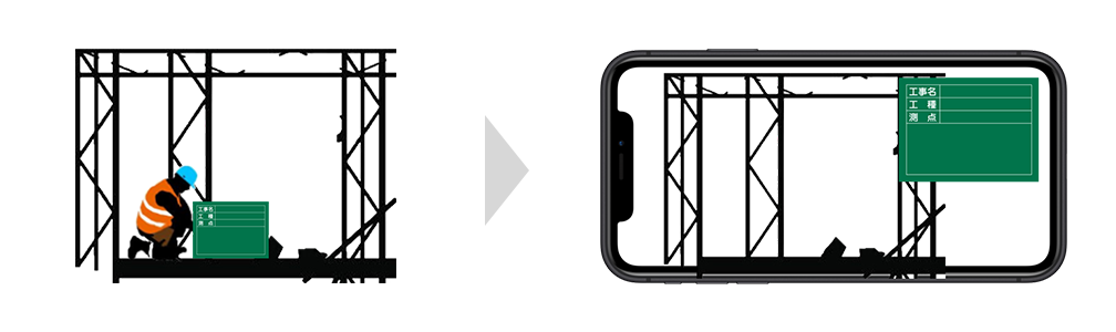 電子小黒板とは、現場撮影の際に施工状況とともに配置して撮影する黒板を、デジタル化したものです。