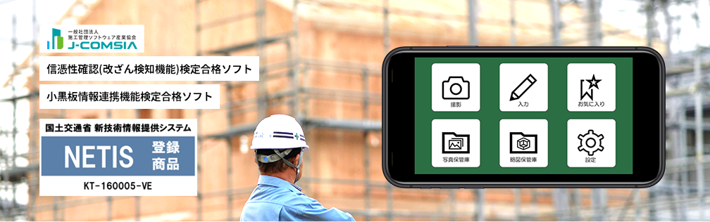 「信憑性確認(改ざん検知)機能」の対応状況については、J-COMSIA(一般社団法人施工管理ソフトウェア産業協会)のホームページをご確認ください。