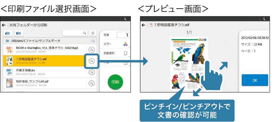 RICOH e-Sharing サービスに保存されているデータをパソコン用アプリケーション「DocsConnect for Windows」で閲覧が可能。外出先でも社内文書を閲覧することができます。