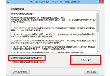 Web Installerの使用許諾契約書に同意し、[インストール]をクリックします。