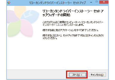リコーカンタンドライバーインストーラーセットアップが開始されます。[次へ]をクリックします。