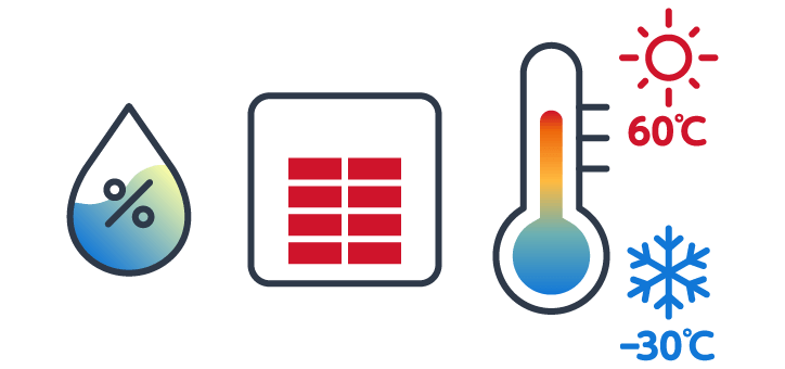 −30°C~60°Cの環境に対応。暑さ指数(WBGT注2)も管理でき、熱中症リスクの把握もしやすくなります