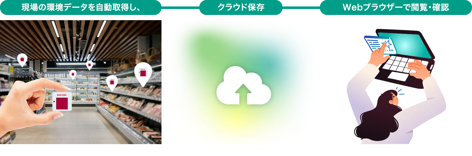 リコーのEH センサーとクラウドが接続。環境データを自動収集し、クラウド保管。