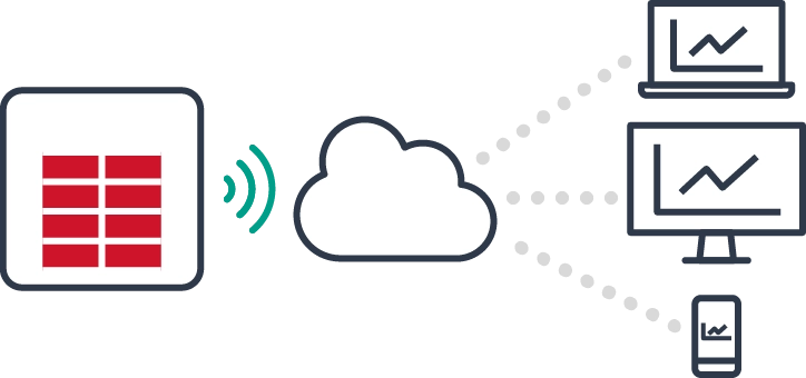 現場に設置したEH センサーごとの取得データを、離れた場所からスマートフォンやパソコンでいつでも確認可能に