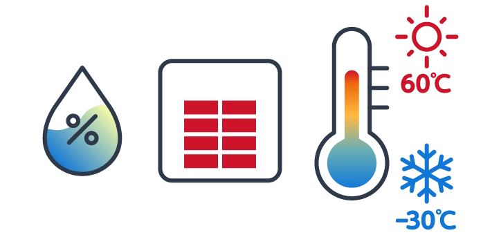−30℃~60℃の環境に対応注。暑さ指数(WBGT)も管理でき、熱中症リスクの把握もしやすくなります