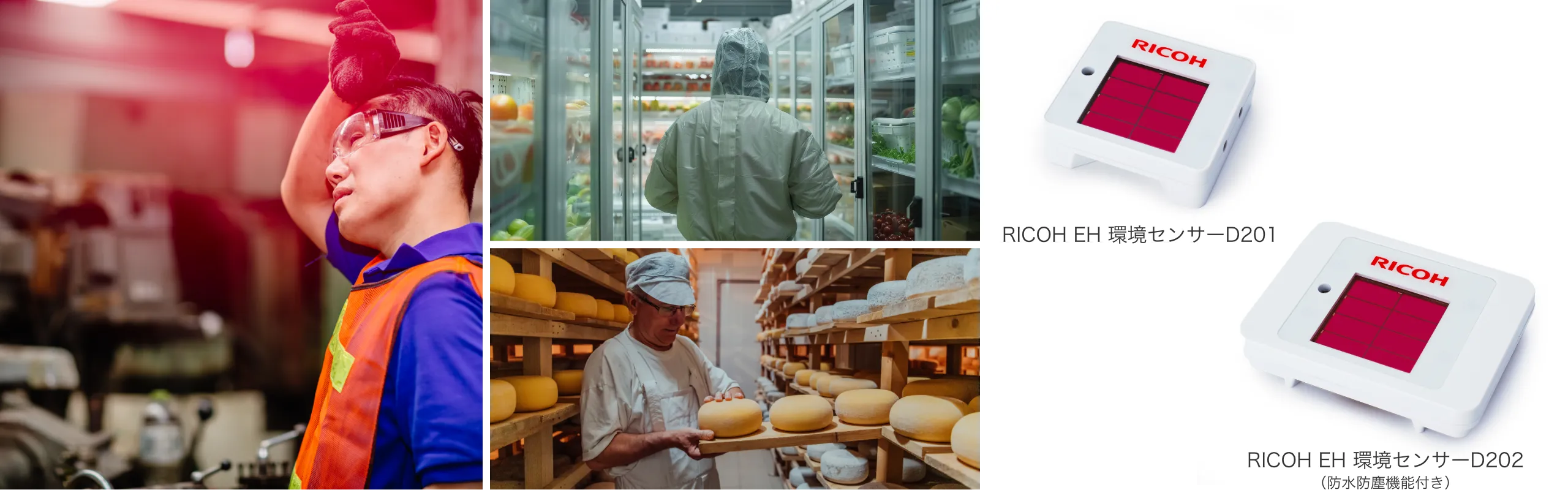 工場、倉庫、店舗や商業施設、高齢者施設など、適切な温度・湿度管理を、昼夜を問わず求められる「現場」があります。そして、その多くは限られた人員体制で運営されており、日々のチェック作業は大きな負担となっています。こうした現場で働く一人ひとりに快適な環境を提供することを目指して、リコーは室内光で発電する次世代型太陽電池を開発し、小型センサーに搭載。さらにクラウドサービスと組み合わせることで、現場となる施設の温度や湿度などの環境データを、いつでも、どこでも、分かりやすくチェックできる画期的なソリューション「RICOH EH SensorCloud 2」をリリースしました。