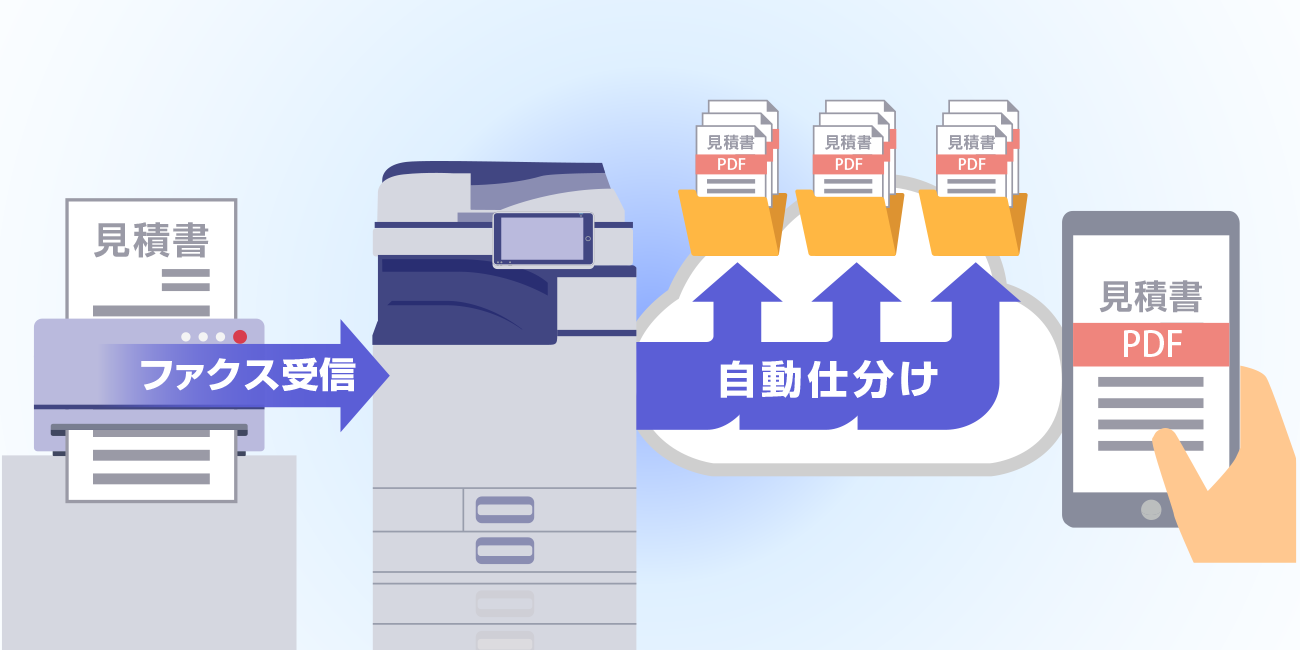 ファクスで届く注文書・見積書などの取引書類をペーパーレスで処理しているお客様は、これまでの業務を大きく変えることなく追加コストを抑えながら、電子帳簿保存法に準拠した形での書類の保存と業務運用が可能です。
