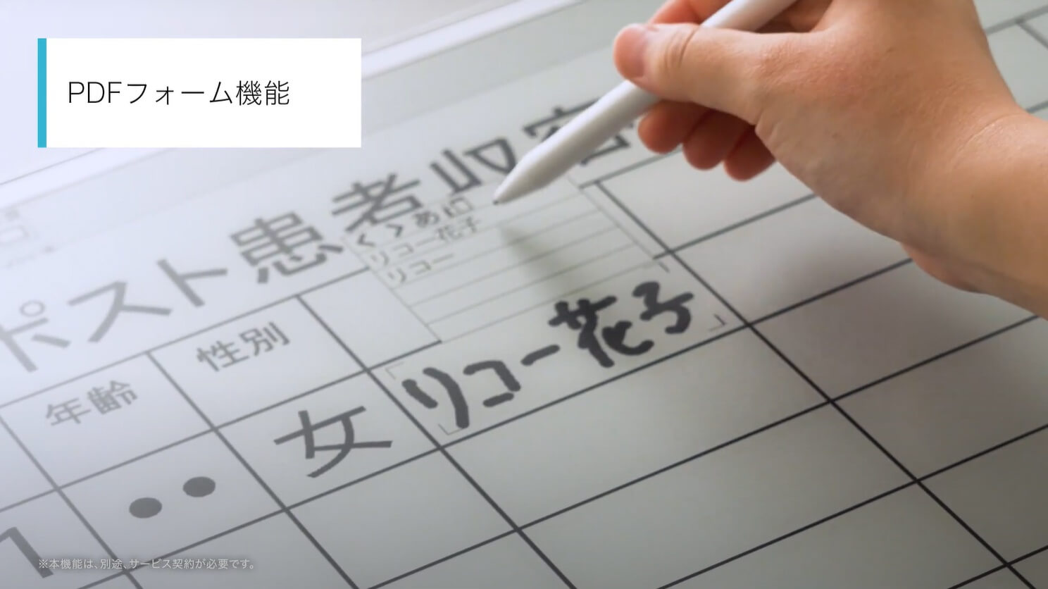 kintoneアプリからPDFフォームを自動で生成し、eWhiteboardで表示できます。書き込んだデータはkintoneに取り込み、管理できます。