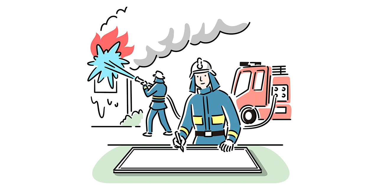 火災現場において、指揮情報やトリアージ情報を整理・共有できます。風雨に晒される厳しい環境での筆記業務は、風で用紙が飛んだり、筆記した文字が滲んで見えにくくなったりします。防塵防水のeWhiteboardなら屋外の現場にも設置でき、これまでの筆記動作と同じようにお使いいただけます。現場の情報を本部や別の部隊へスムーズに情報共有を行えるので、意思決定を迅速に行うことができ、これまでより早い対応をとることができます。