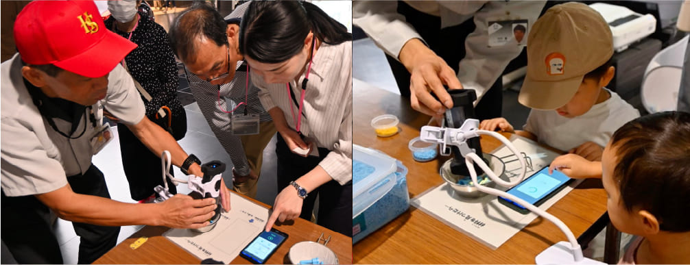 マツダミュージアムで実施したプラスチック射出成形体験イベントでは、来場した子どもたちにRICOHハンディセンサーを操作してもらった。