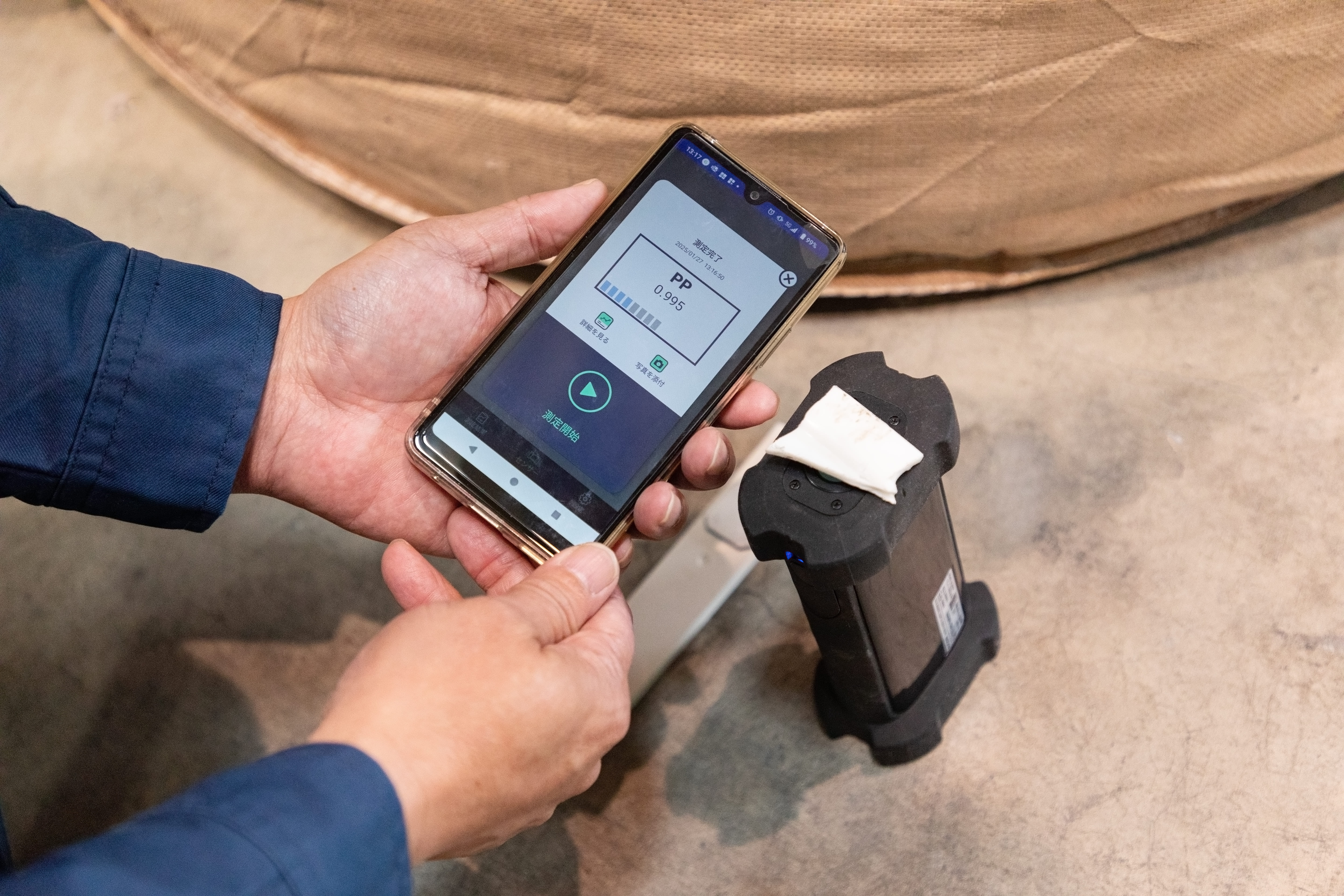 実際に使用していく中で、触感や見た目による経験則と数値による判定結果を照らし合わせることで、作業員の判断精度が向上しています。時には『これは使えない』と思っていた素材が実は使えるなど、新たな発見もありました。作業員自身が納得しながら判断できるようになったことは、大きな進歩だと感じています。