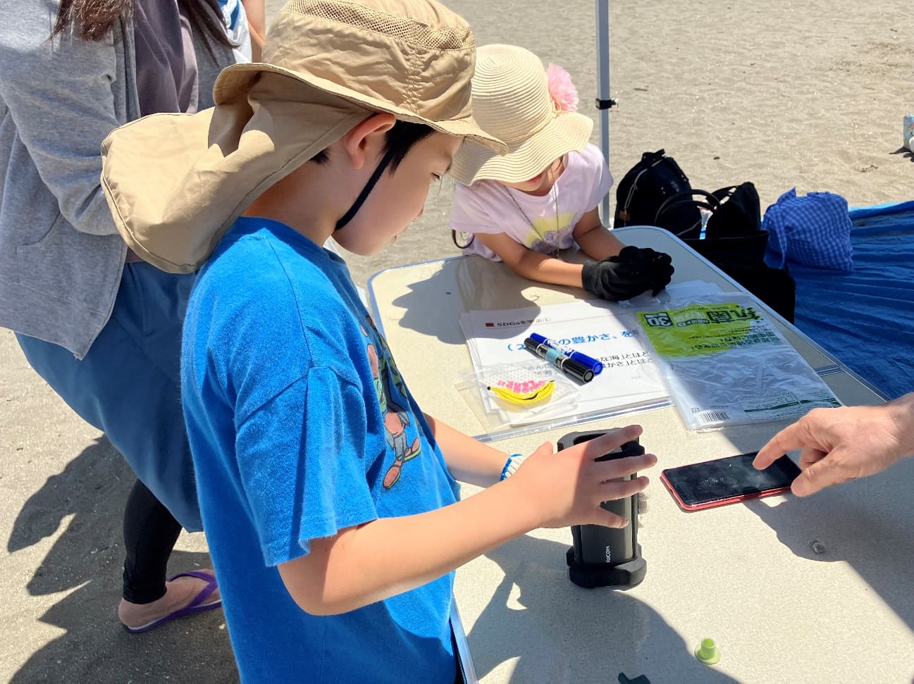 クリーンアップ活動に参加する、主にリコーグループ社員のお子様たちに、プラスチックの識別を体験していただくとともに、