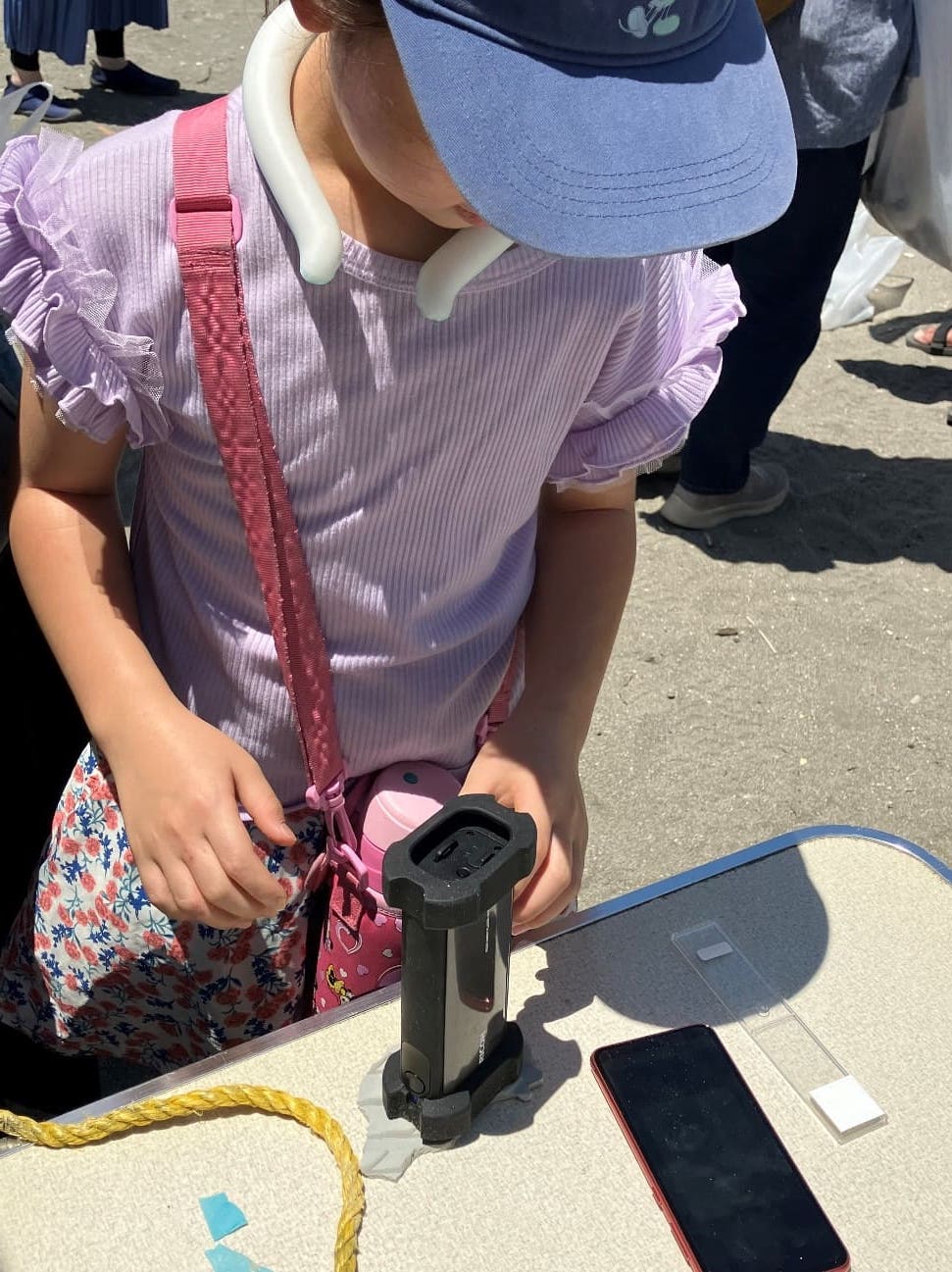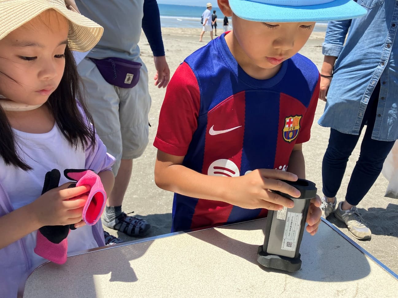 ビーチクリーンをはじめる前に、ハンディセンサーを見に来て手に取る方や、しくみを知りたいと聞きにきた方、