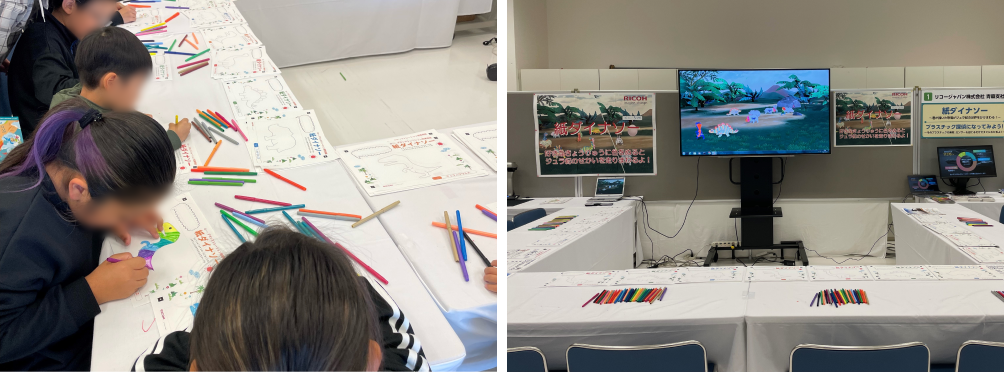 リコージャパンのブースでは、2つの体験コーナーを設置し、子どもたちが楽しみながら学べる内容を提供しました。