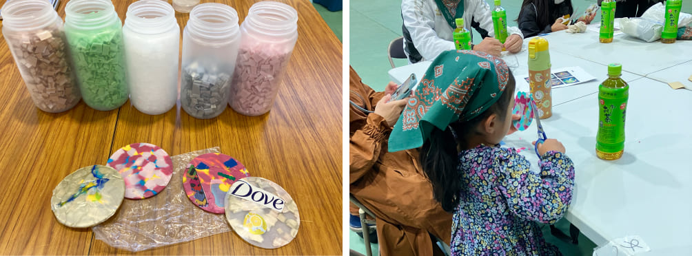 プラゴミからリサイクルしたプラスチックで「コースター作り」のワークショップが行われました。子どもたちは廃棄されるプラスチックが新たな形で役立つことを実感し、リサイクルの重要性を学びました。完成したカラフルなコースターは、参加者の個性とアイデアが光る作品となり、「ゴミにも新しい価値がある」と気づく貴重な体験となりました。