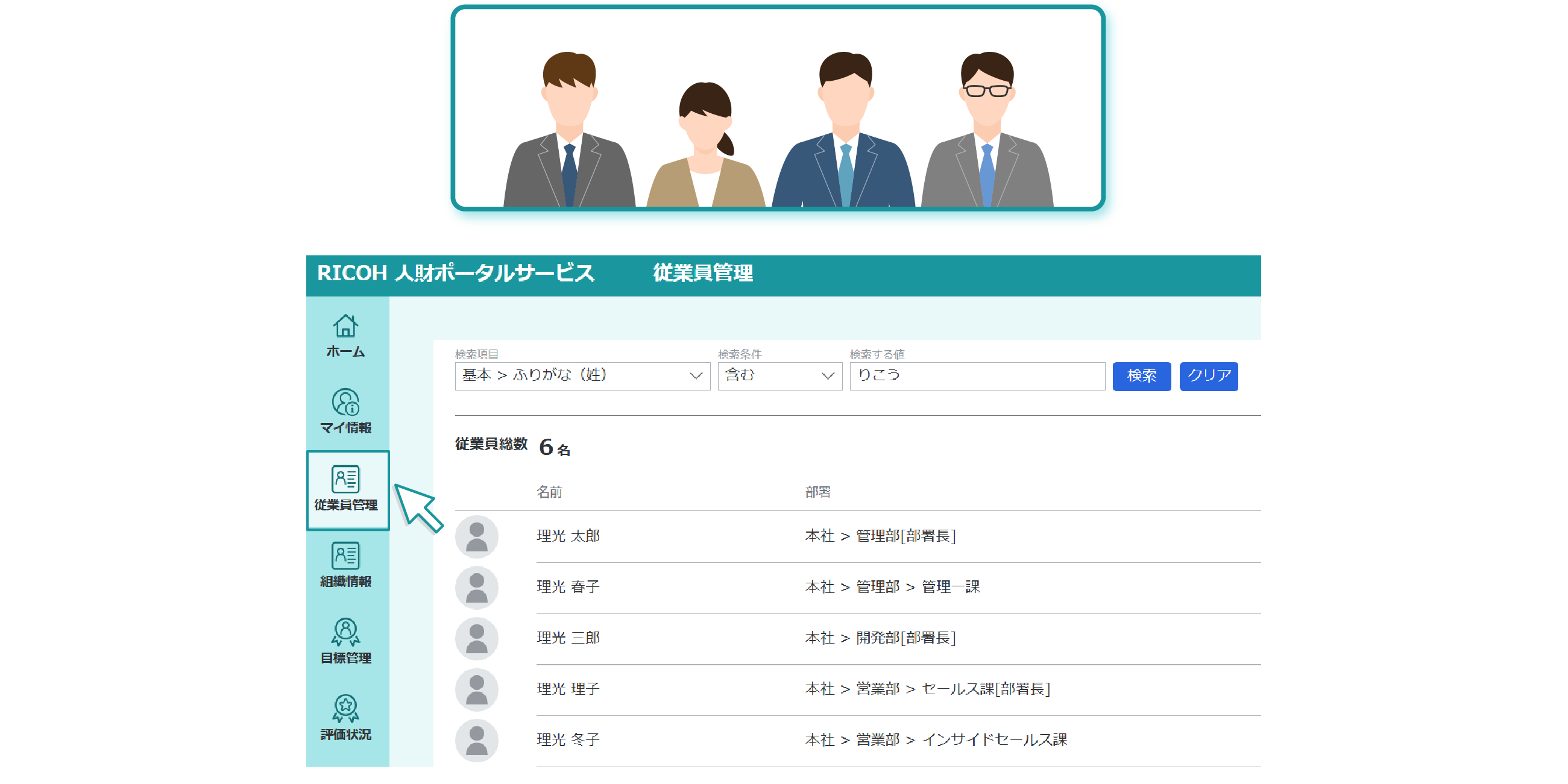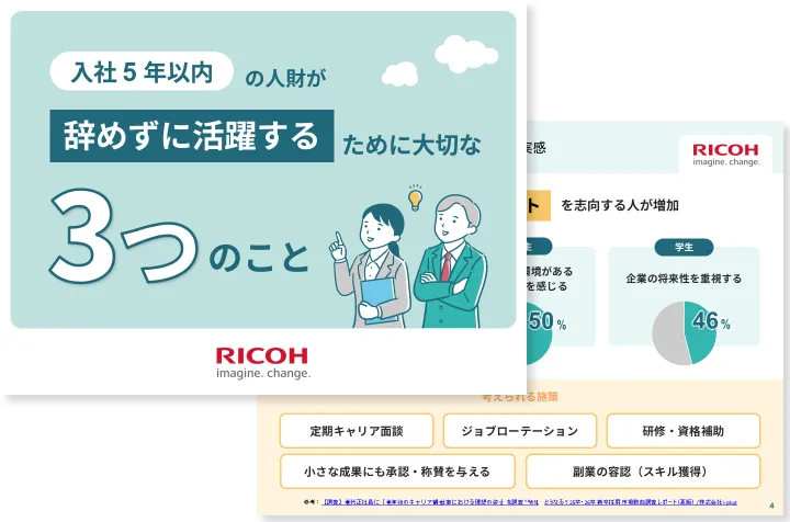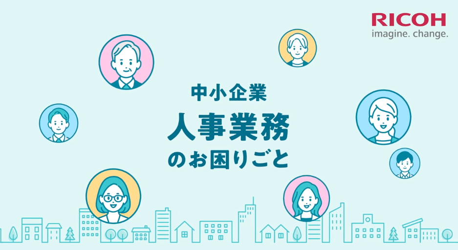 バックオフィス業務の「人事労務」における提案経験を踏まえ、RICOH 人財ポータルサービスにてお客様の人事課題の解決を支援します。