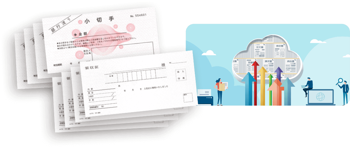 改正電子帳簿保存法に準拠した証憑電子保存サービスとスムーズに連携。スキャンした電子データを直接クラウドにアップロードし、検索項目を入力するだけで電子保存が完了します。