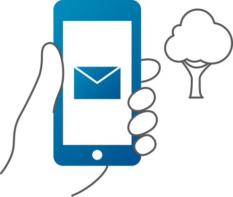 会社に届いたファクス文書を外出中にスマートデバイスで閲覧・返信可能。あらかじめ設定しておけばファクスの受信をEメールでお知らせします。
