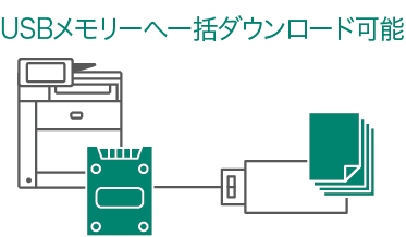 ファクス蓄積文書のバックアップとして、USBメモリー*4に一括ダウンロードが可能です。受信年月日を指定し、特定期間の蓄積文書をダウンロードできます。