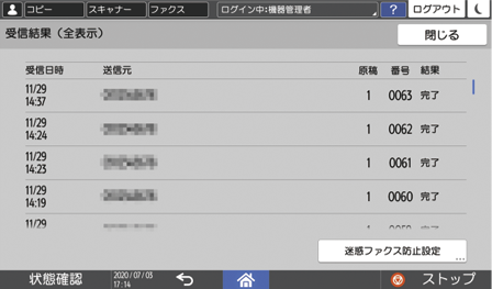 業務に不要な迷惑ファクスを受信しないように、ファクスの通信履歴からスマートフォンのような簡単操作で迷惑ファクスの設定が可能です。不要なファクスの出力を抑制することでファクス出力コストの削減を実現します。