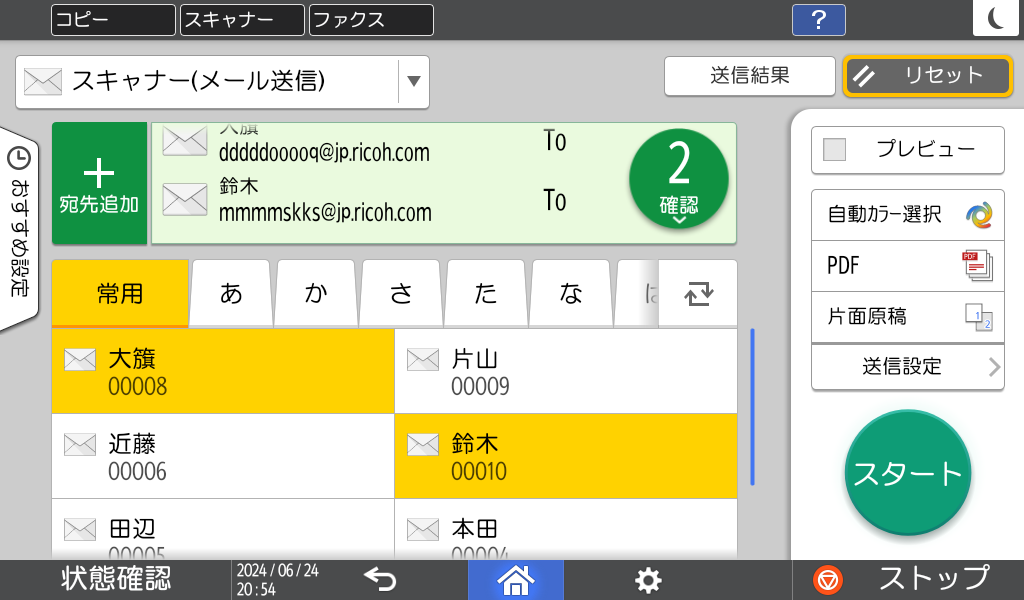 操作画面上で件名/送信者/メール本文/ファイル名を指定してEメール宛先に直接送信可能です。