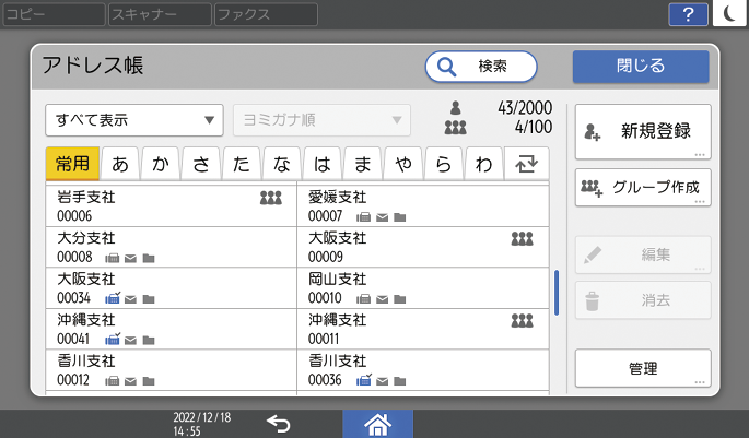 アドレス帳に登録できる宛先数2,000件、1グループに登録できる宛先数最大500件*。
