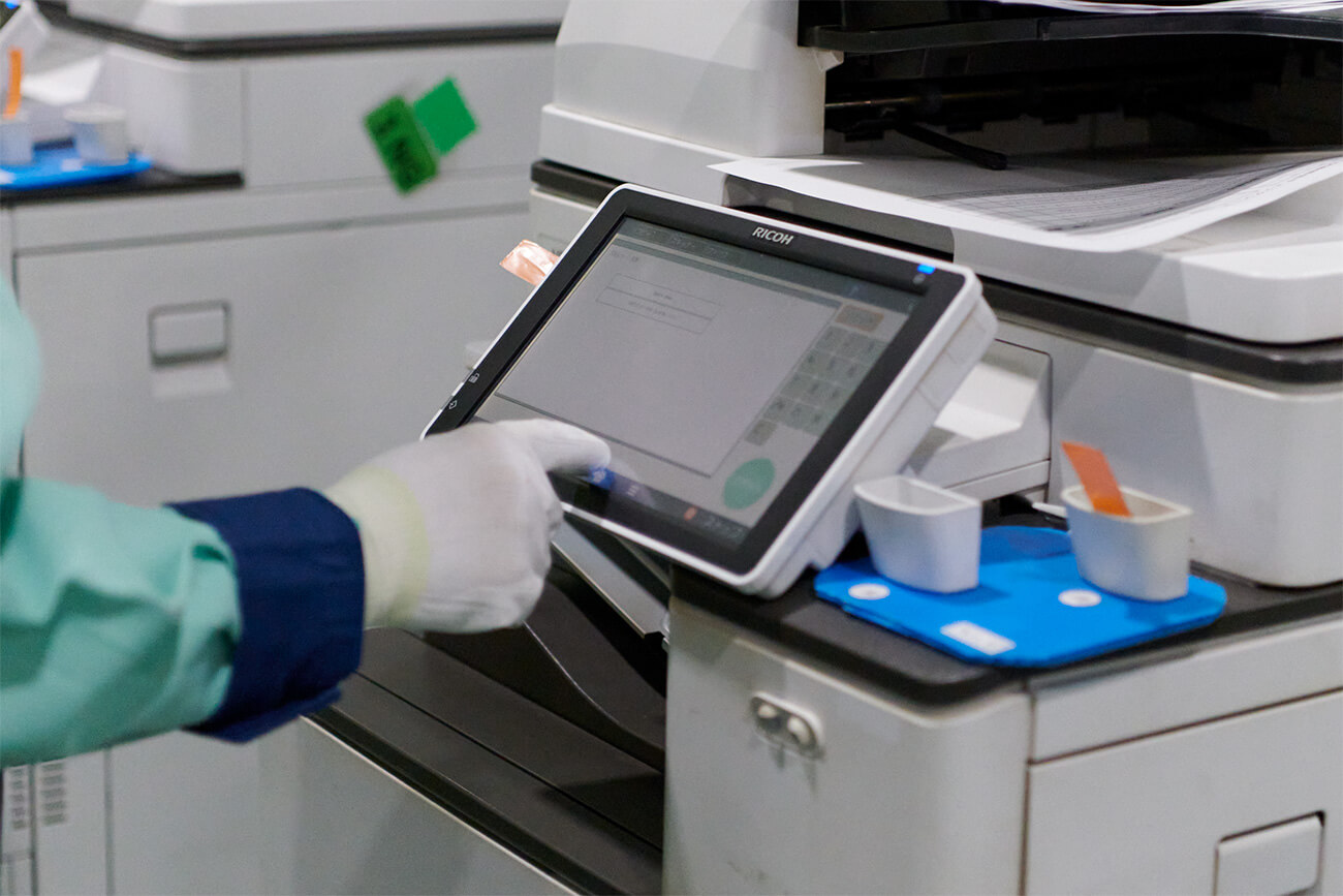 人の接近を検知する人感センサーを搭載。スリープモード時も操作パネルに触れて約1秒で操作可能に。環境にやさしい設定でも待ち時間を感じることなく作業ができます。