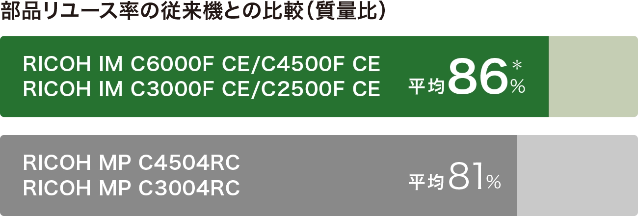 先進の技術により、再使用部品の選別、再生、検査を行ないます。これにより、質量比で平均86%*のリユース部品の使用を実現しました。