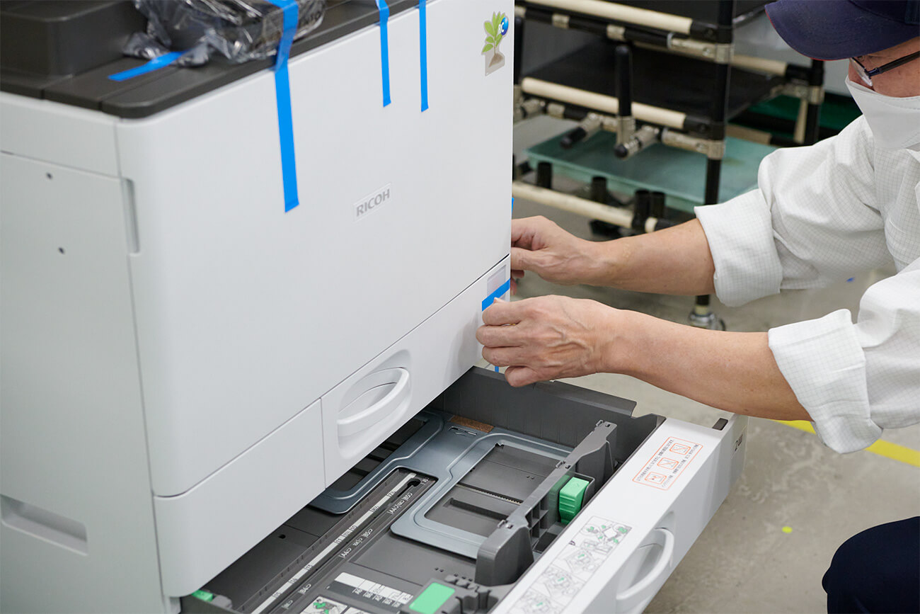RICOH IM C6000F CE/C4500F CE/C3000F CE/C2500F CEの組み立て工場では、使用するすべての電力を再生可能エネルギー由来の電力で賄っています。