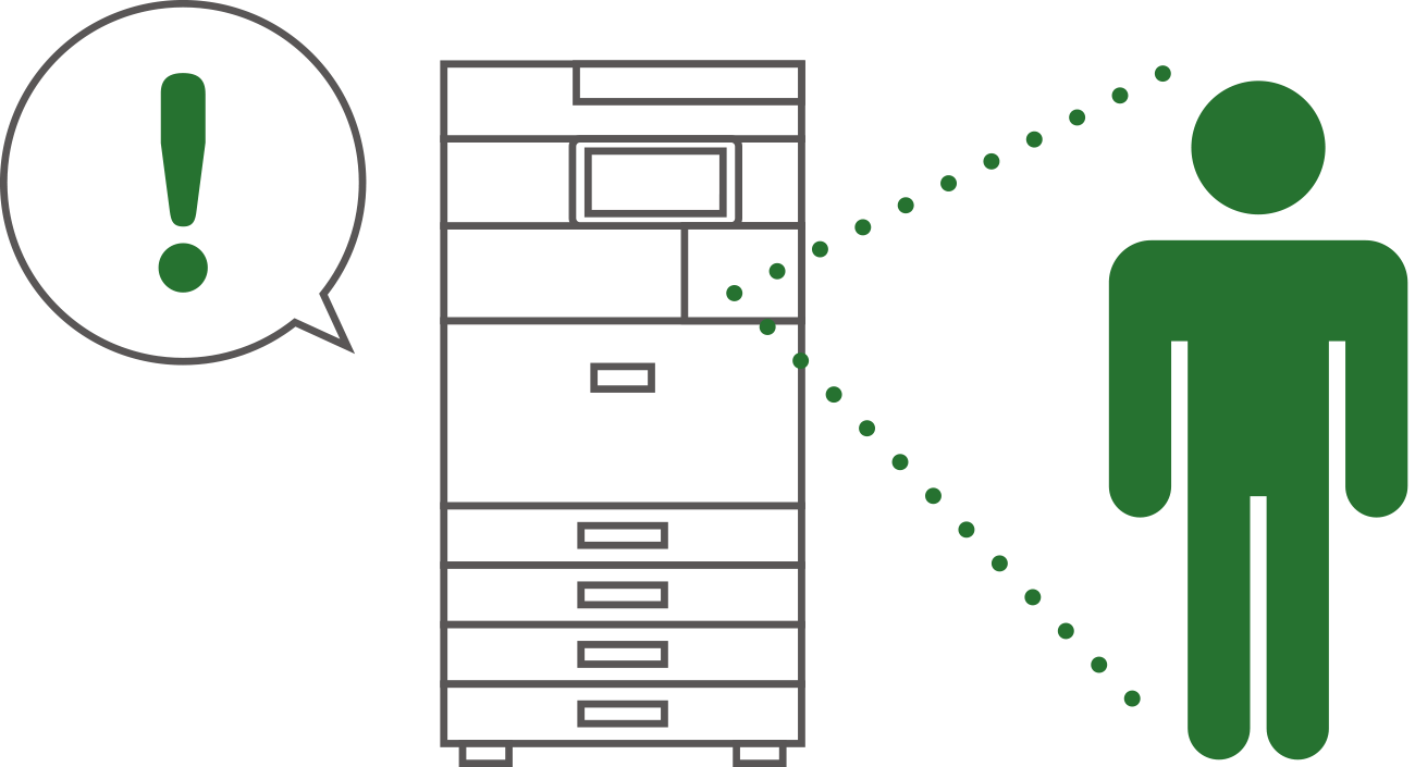 Web Image Monitorを使ってパソコンから同じネットワーク内の機器の画面を確認・操作できます。管理者が機器のある場所に行かなくてもエラーの確認や操作代行、設定変更ができ、円滑にサポート業務や機器管理を行なうことが可能です。