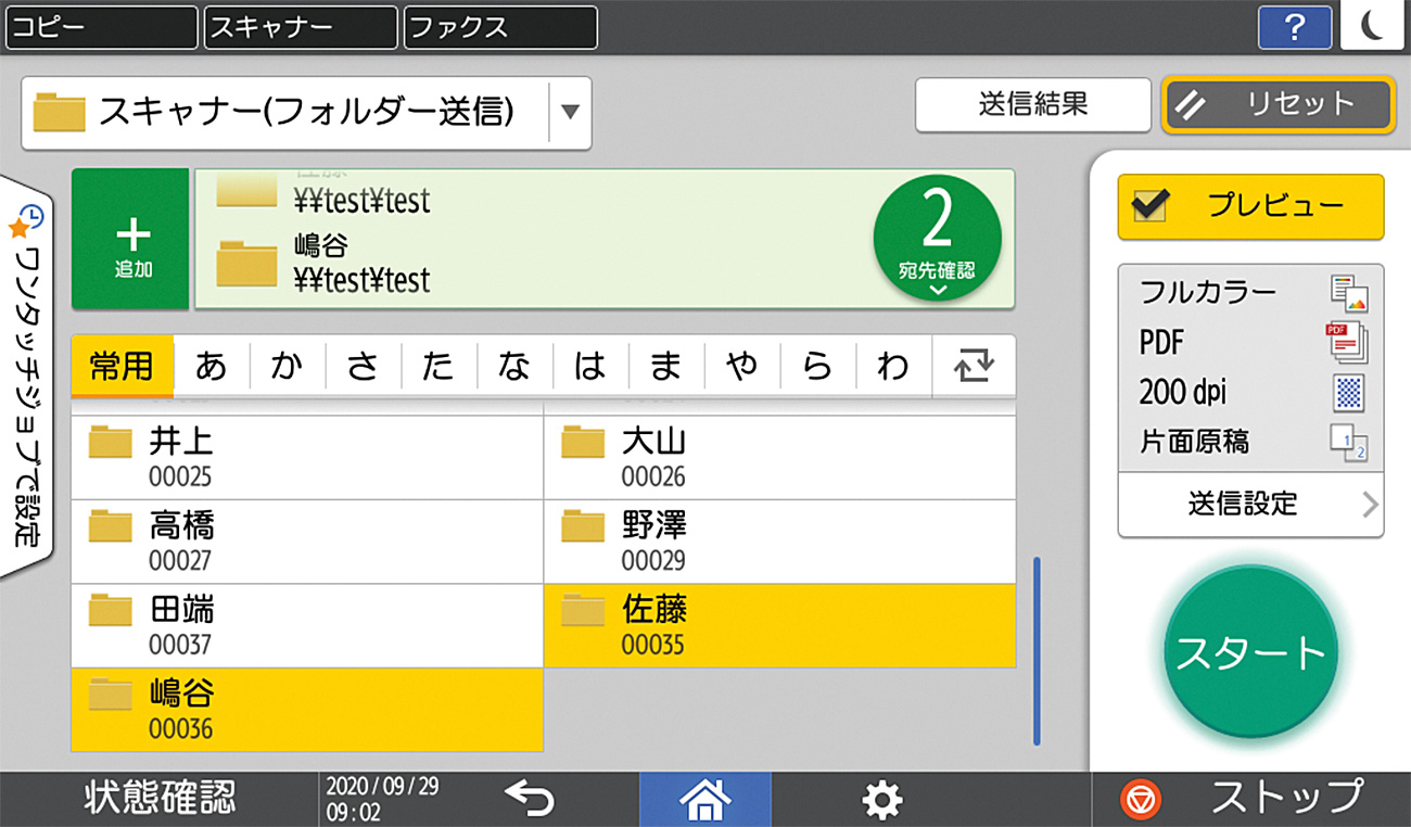 複合機から共有フォルダー内の文書を選択して印刷することができます。例えばチラシなどを簡単に印刷できます。印刷条件の保存も可能です。