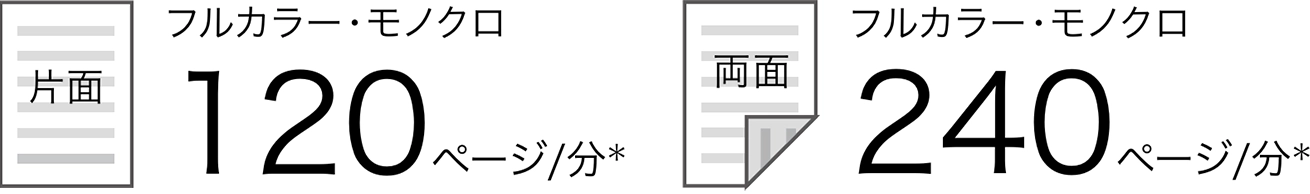 コピー/プリント速度は、片面両面同速の60ページ/分*1を実現しました。