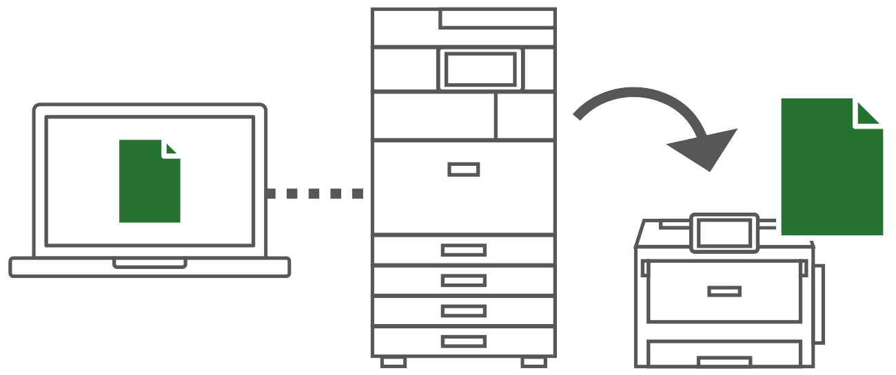 パソコンと複合機間のプリントジョブデータを暗号化することで印刷データを保護します。