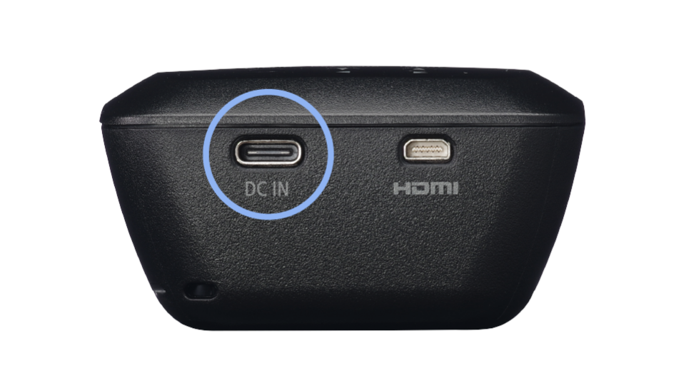 電源は、USB Type-C端子へ接続。電池への充電の他、電源接続での連続投影も可能です。(2A以上の出力のモバイルバッテリーでも投影可能)
