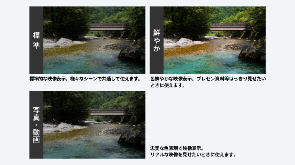 ※環境光とは、使用者や投影面(スクリーン)の周りの明るさを指します。