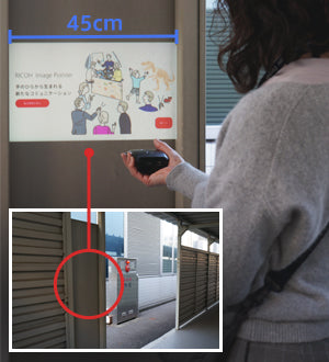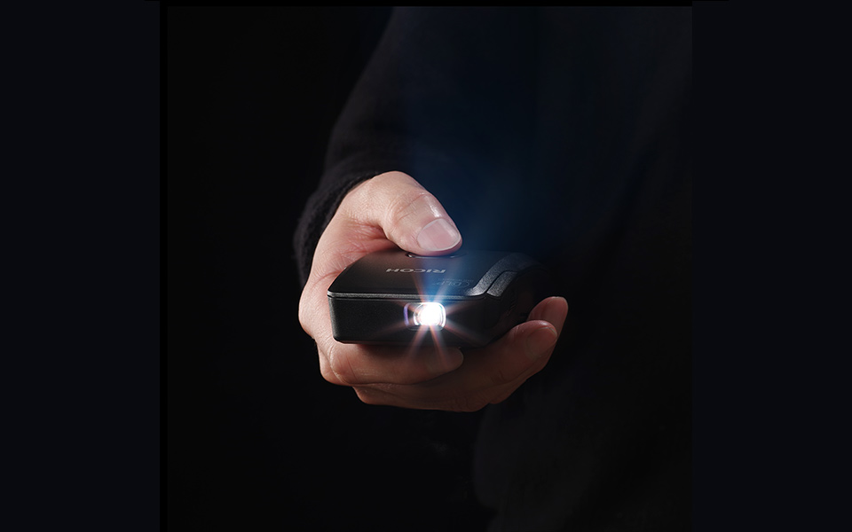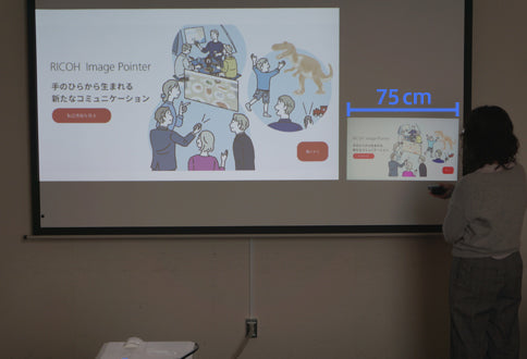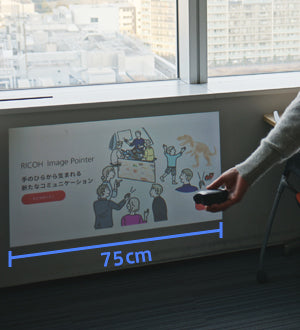 RICOH Image Pointerとスマートフォンとを接続状態のまま、投影Offの待機設定にすることが可能。見せたいときには、待機状態からボタンひとつで、すぐに投影できます。