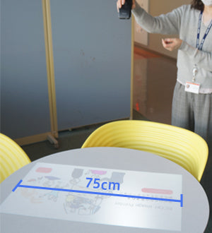 置き方に決まりがないので、角度も投影場所も自由自在。