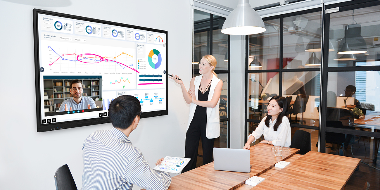中~大規模の会議室でも、WEB会議用のタッチモニターとして、