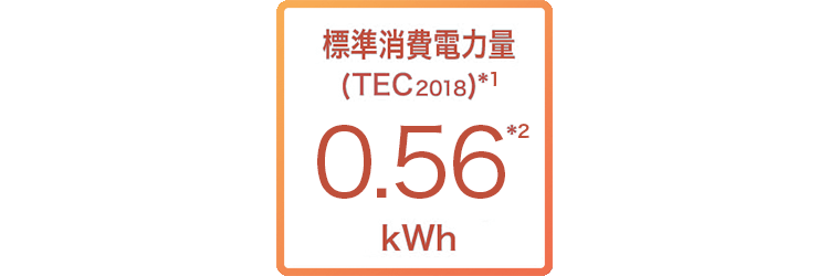標準消費電力量(TEC2018)*1は0.56㎾hを実現。省エネに貢献します。