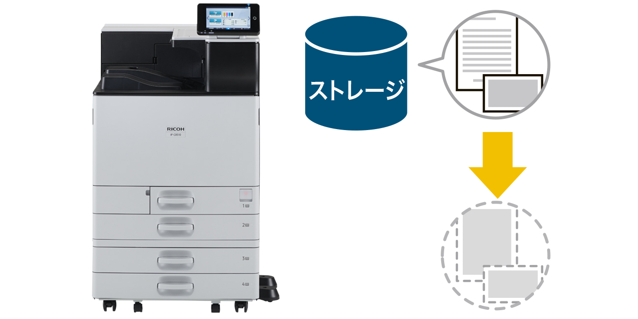 印刷ジョブを保存し、文書の再印刷などを簡単にします。また、文書単位でパスワード設定が可能です。