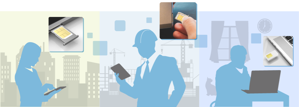 リコー モバイル 通信サービスは、リコージャパンが提供する法人向けモバイルデータ通信サービスです。USIMカード*対応パソコン・タブレットに装着することで、LANやWi-Fi™環境の無い場所でも4G/5G通信による快適なインターネット接続を実現します。また、公衆Wi-Fi™や個人インターネット接続のセキュリティリスクがなく、安心してビジネスに活用できます。