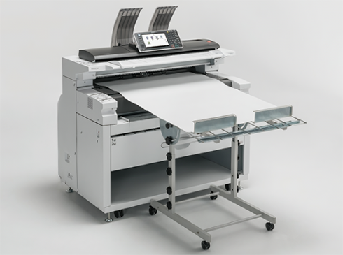RICOH MP W6700 SPはA0タテ:25秒、A1ヨコ:17秒のスピーディーなファーストコピータイムを実現。また、連続コピーはA0タテ:3.7枚/分、A1ヨコ:6.7枚/分。