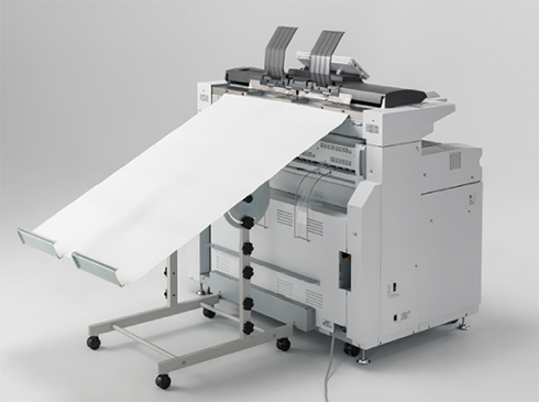 省スペースでフラットに、A1ヨコまでの用紙を最大99枚 *までスタック可能な胴内排紙機構を採用。プリント・コピー後のスマートなペーパーハンドリングを実現しています。