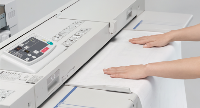従来、複数回に分けてコピーしていた長尺図面も、一度のコピーで美しくアウトプット可能に。分割したコピーを貼り付けるなどといった作業の手間を軽減します。