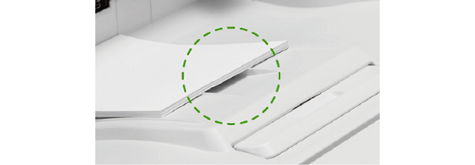 机の下やラック上に設置した場合でも、用紙を取りやすいよう「くぼみ機構」を採用。これにより、A5 などの小さな用紙サイズも、スムーズに取ることができます。