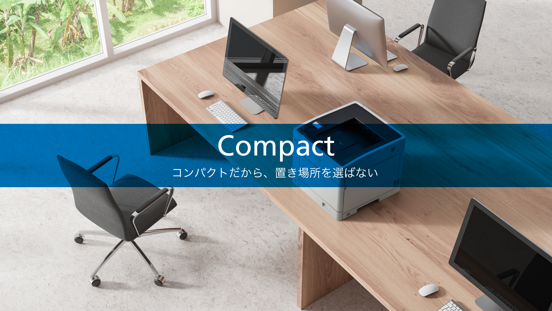 設置寸法は、本体幅410mm、奥行き429mm、トップクラスのコンパクトボディ*2を実現しました。また、すっきりとしたスクエアなデザインで設置場所を選ばず、多彩なレイアウトが可能です。