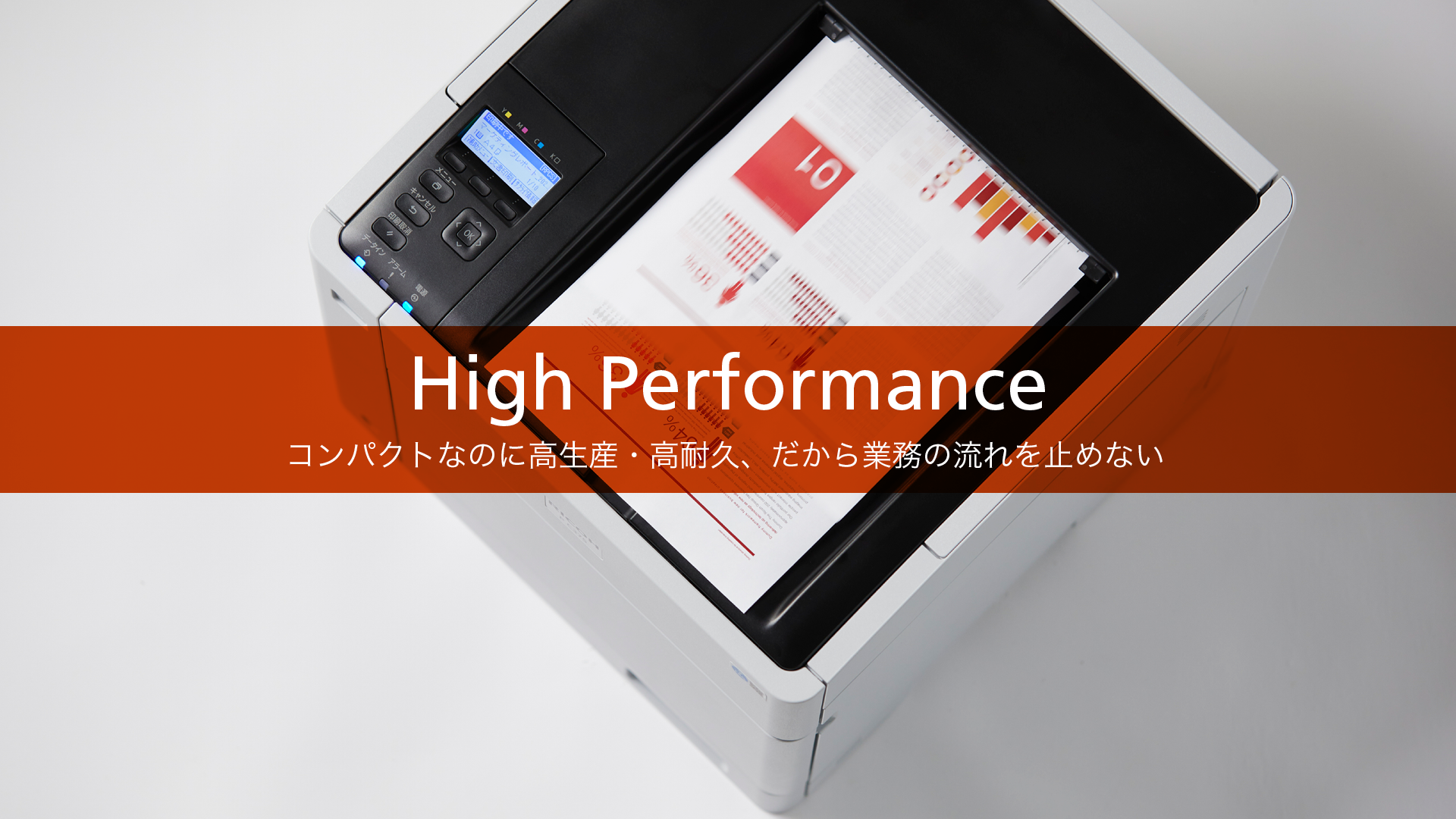 フルカラー・モノクロ同速32枚/分*1の高速プリントに、急ぎの1枚もお待たせしない5.3秒*3のファーストプリント。最大45万ページ*4の高耐久性で安心してご利用ができ、お客様の出力業務をサポートします。
