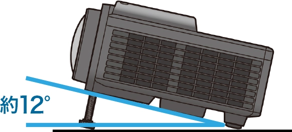 レンズ側を最大約12°まで上げることができます。映像を上方向に投写したい際に活用でき、台形補正機能(垂直/自動・手動)による補正とあわせて、ことのほか便利です。