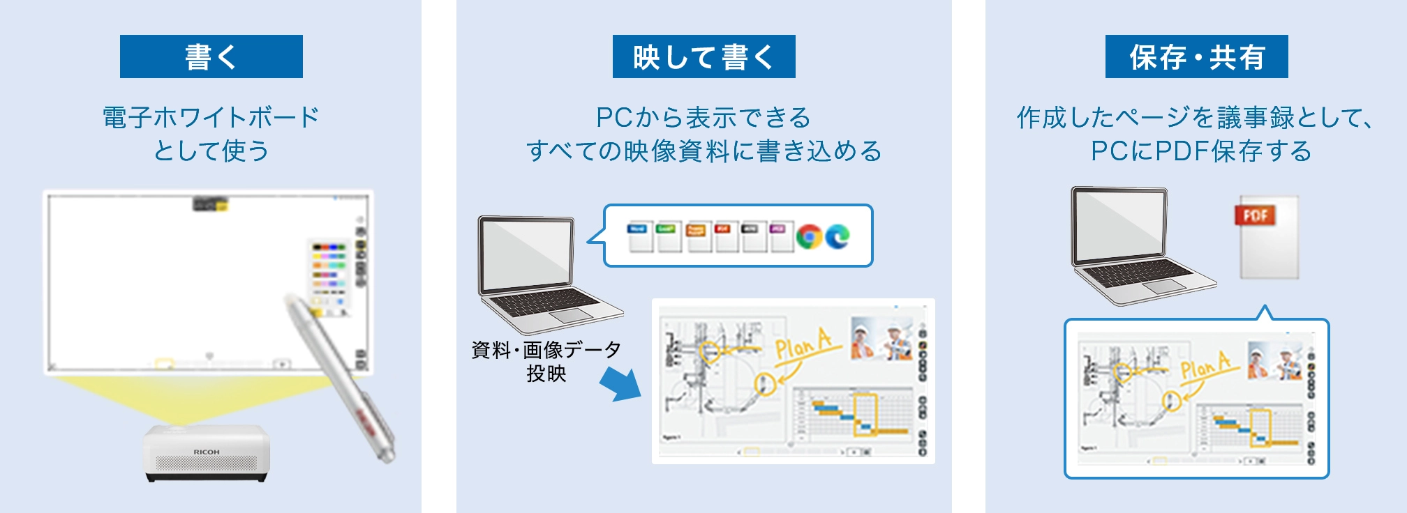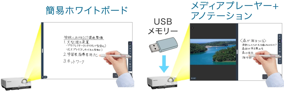 加えて、パソコンに「IWB Lt for Windows®」(無償)をインストールすれば、本格的なホワイトボードアプリケーションをご利用できます。