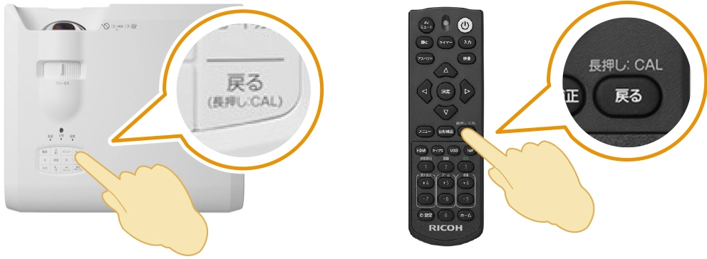 キャリブレーションは本体またはリモコンのボタンを押すだけ。